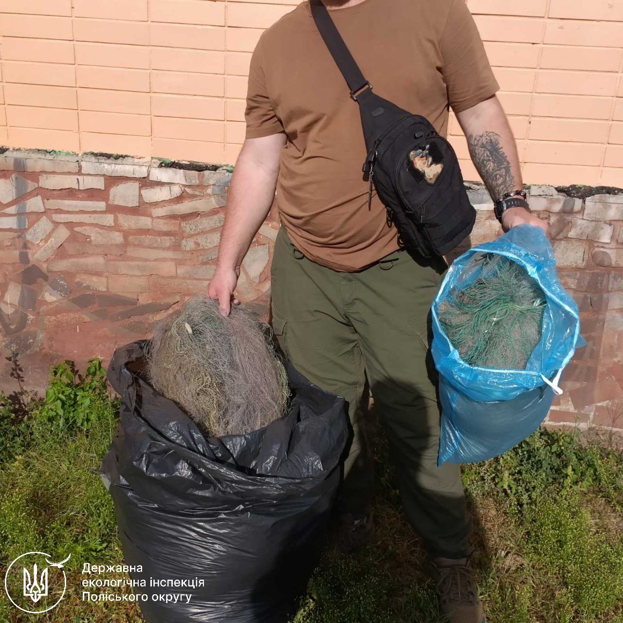 До Державної екологічної інспекції Поліського округу звернулися представники територіальної оборони Збройних Сил України з проханням надати на потреби оборонців риболовні сітки, якими здійснювався або міг здійснюватися незаконний вилов водних біоресурсів у водоймах Рівненської області. Таке спорядження є важливим для виконання бойових завдань та збереження життя особового складу.