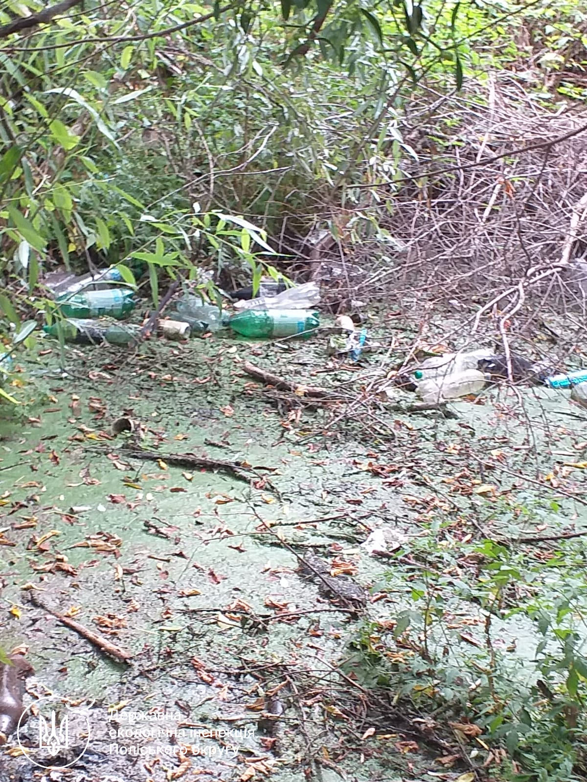 Факти, викладені у зверненні, держекоінспекторами були підтверджені: виявлено засмічення водного об’єкту (канави) побутовими відходами (поліетилен, пластик та інші види сміття).