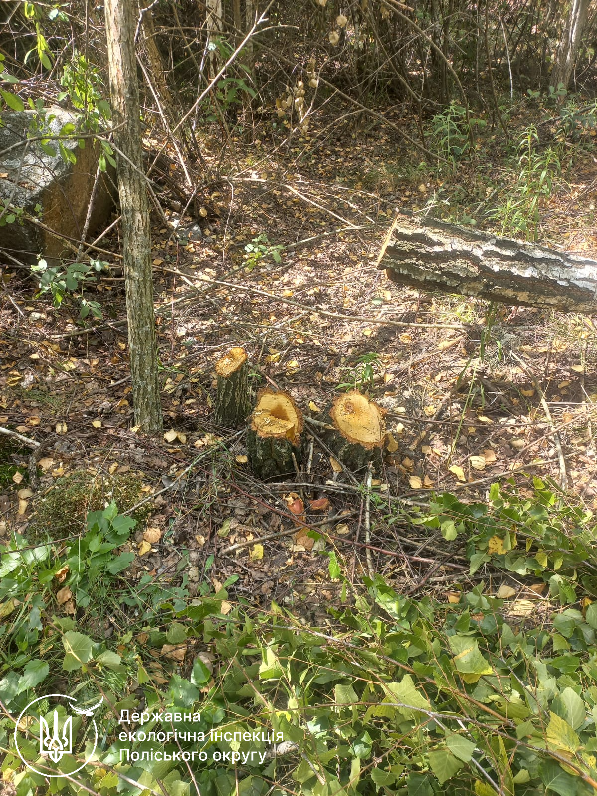 Державними інспекторами з охорони навколишнього природного середовища Поліського округу розглянуто матеріали, що надійшли від правоохоронних органів, щодо факту незаконної порубки, здійсненої села Сали Черняхівської селищної ради без наявності ордера на видалення зелених насаджень.