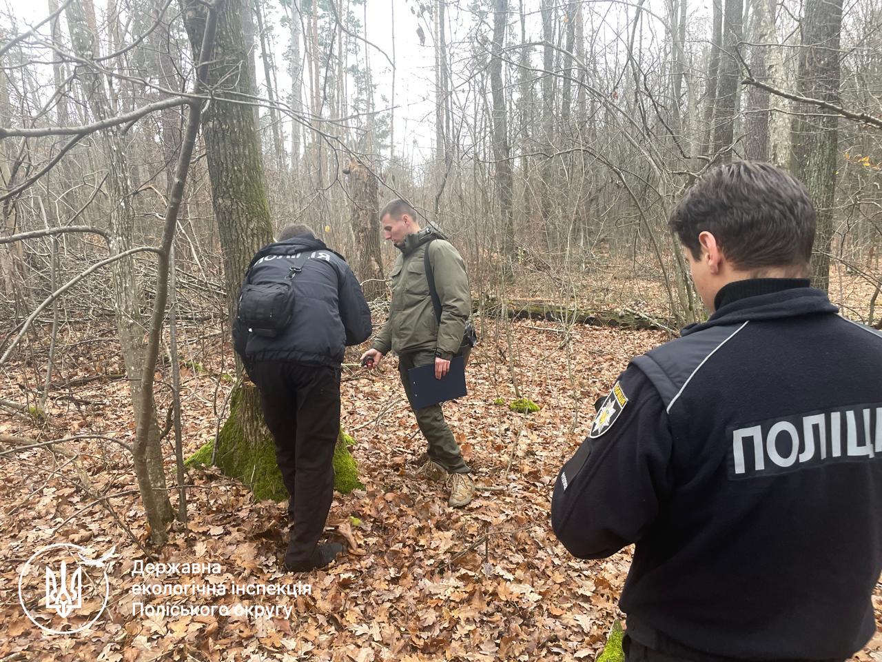 За вказаним фактом представниками Екоінспекції здійснено виклик за номером 102, після чого на місце події прибула слідчо-оперативна група для спільного обстеження місця порубки, складання протоколу огляду місця події та оформлення інших необхідних процесуальних документів.