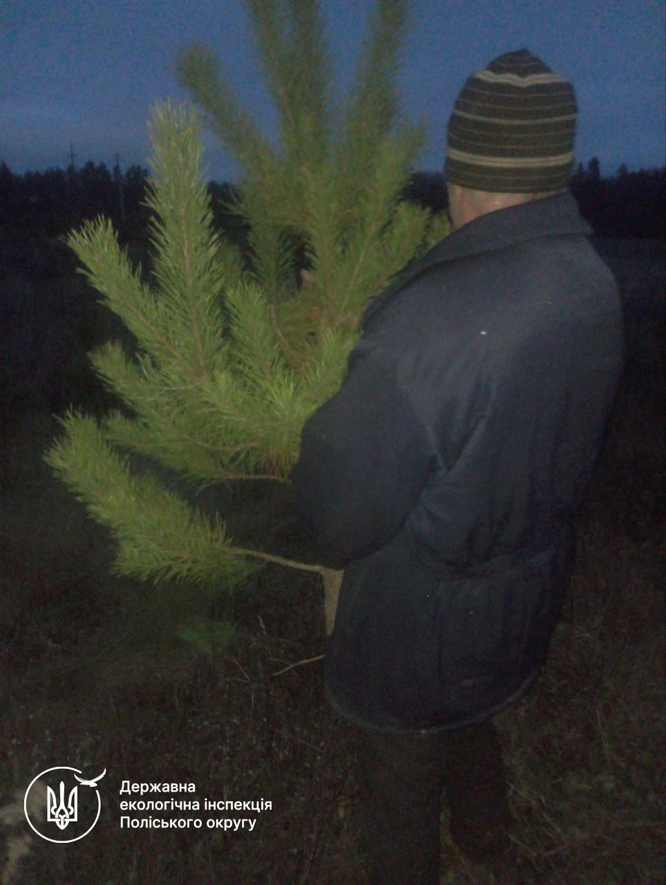 Разом з тим, у ході патрулювання околиць Житомира інспектори виявили громадянина, який без дозвільних документів здійснив незаконну порубку одного дерева породи сосна для використання як новорічного.