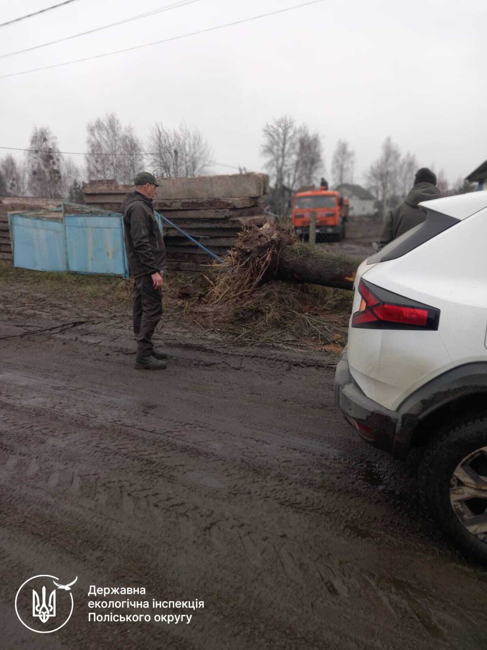Також на підставі звернення, що надійшло через сервіс «ЕкоЗагроза», проведено обстеження зазначеної у зверненні території, за результатами якого встановлено факт незаконної вирубки 7 дерев різних порід на землях лісового фонду Сарненського надлісництва філії «Поліський лісовий офіс» ДП «Ліси України». Особи, що вчинили вирубку дерев не встановлені. Розмір завданих збитків становить 25 926 грн. Для встановлення осіб, винних у вчиненні порушення природоохоронного законодавства, та вжиття заходів реагування у межах повноважень Екоінспекція скерує відповідні матеріали до правоохоронних органів.