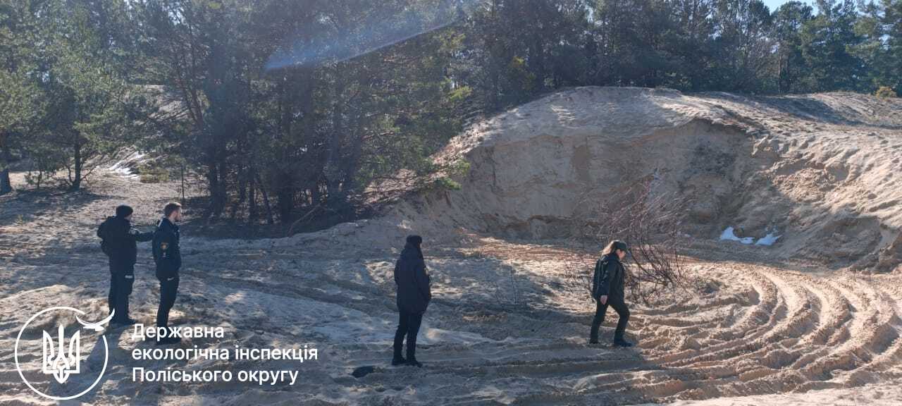 Крім того, державними інспекторами здійснено обстеження місця незаконного видобутку піску, раніше виявленого за результатами аналізу супутникових знімків спільно з представниками Української природоохоронної групи та ГО «Природоохоронні ГІС України». Встановлено ознаки самовільного користування надрами - видобутку піску неподалік села Тутовичі на землях лісового фонду невстановленими особами. На місце події інспекторами було викликано слідчу оперативну групу для фіксації виявленого порушення.