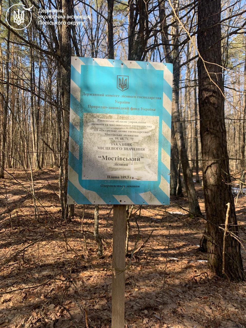 Державна екологічна інспекція Поліського округу зафіксувала факт грубого порушення природоохоронного законодавства на території лісового заказника місцевого значення «Мостівський» на Рівненщині.