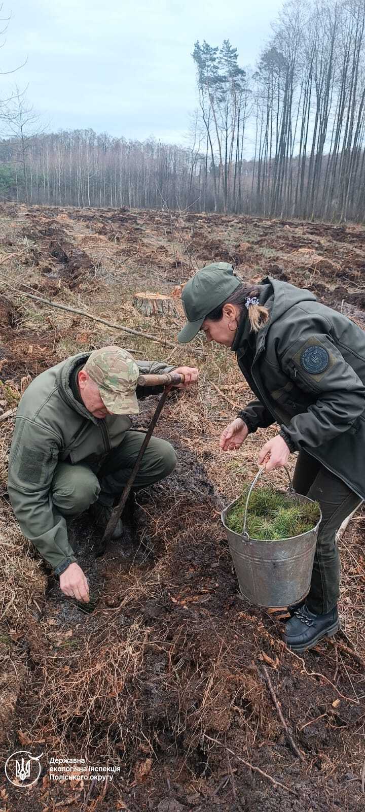 Окрім контрольної діяльності, у Міжнародний день лісів працівники Державної екологічної інспекції Поліського округу долучилися до весняної лісокультурної акції, під час якої здійснювалося висаджування дерев на спеціально підготовлених ділянках. Такі заходи спрямовані на відновлення лісових екосистем та формування екологічної свідомості.