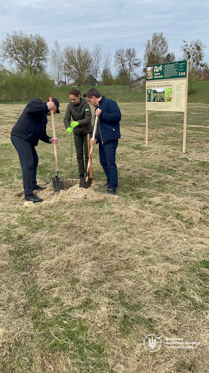 Екологічна ініціатива «Шевченко єднає Україну» знаходить своє продовження на Рівненщині. У місті Рівне представники Державної екологічної інспекції Поліського округу спільно з партнерами долучилися до висадження дубів, вирощених із жолудів дерев, що є живими свідками шевченківської доби.