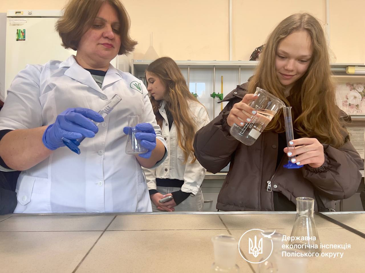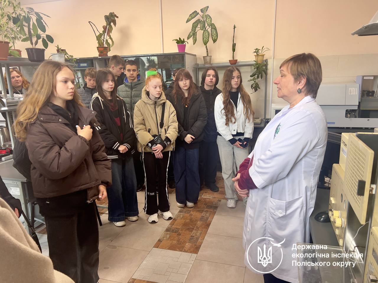 Окрему зацікавленість викликала розповідь завідувачки відділу інструментально-лабораторного контролю Ірини Березюк та її колег. Вони ознайомили учнів із роботою лабораторії – одного з ключових підрозділів Інспекції, де проводяться дослідження води, атмосферного повітря та ґрунтів. Саме ці аналізи дозволяють підтвердити або спростувати факти забруднення та сформувати належну доказову базу для притягнення порушників до відповідальності.