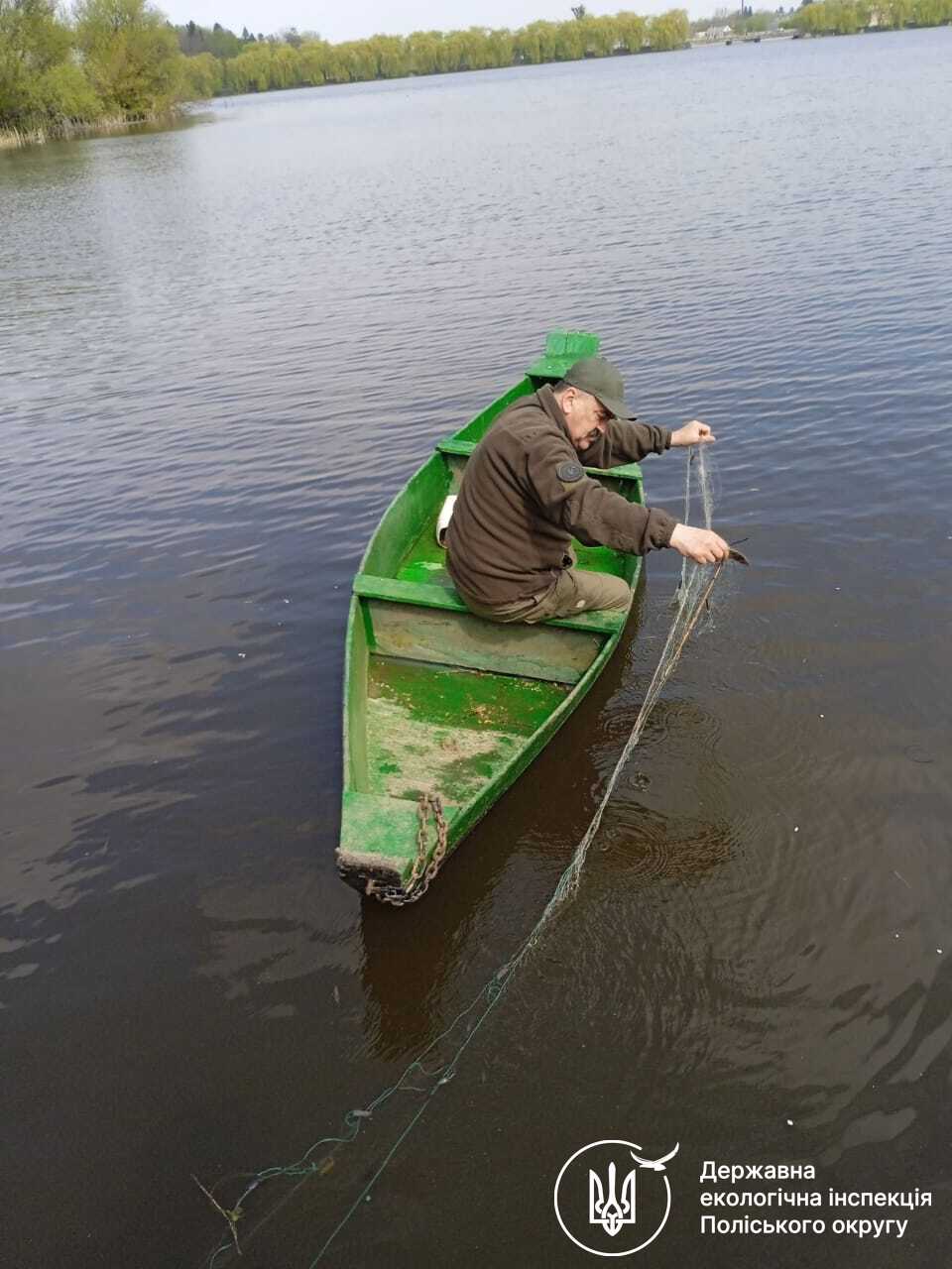 Державними інспекторами з охорони навколишнього природного середовища Поліського округу продовжуються заходи, спрямовані на запобігання та виявлення незаконного добування (вилову) водних біоресурсів у період дії нерестової заборони.