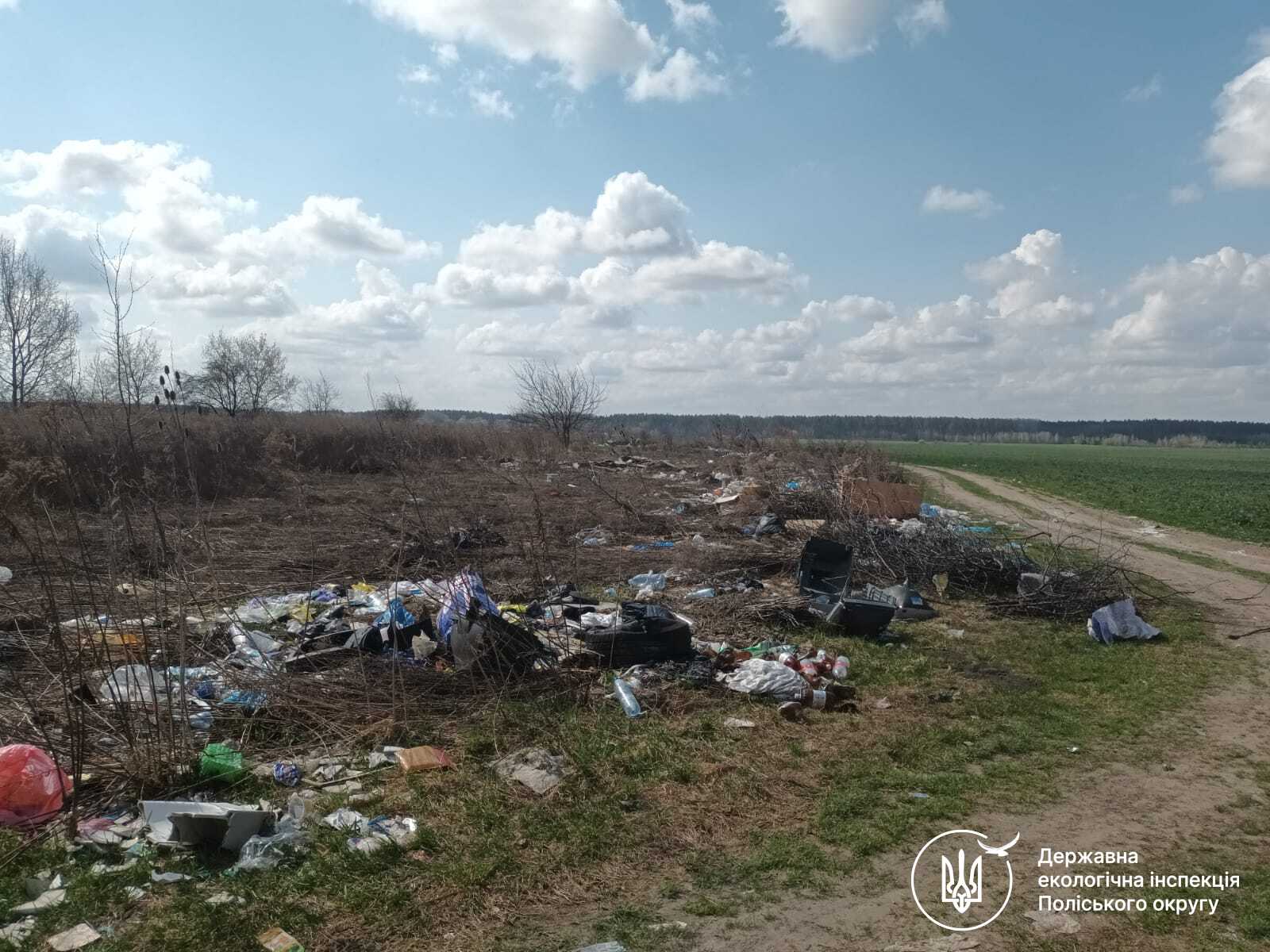 розміщення відходів на значній площі за межами населеного пункту, поблизу