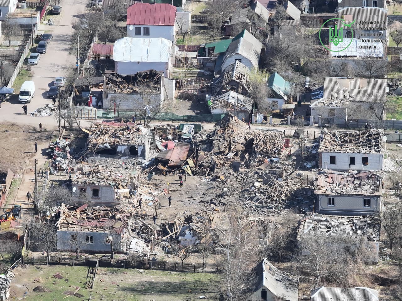 Після завершення роботи правоохоронних органів та огляду місць подій екоінспектори провели обстеження територій, зокрема з використанням дронів, з метою фіксації наслідків руйнувань, визначення площ засмічення територій, що виникли внаслідок утворення відходів руйнації, а також слідів пожеж у місцях влучань.