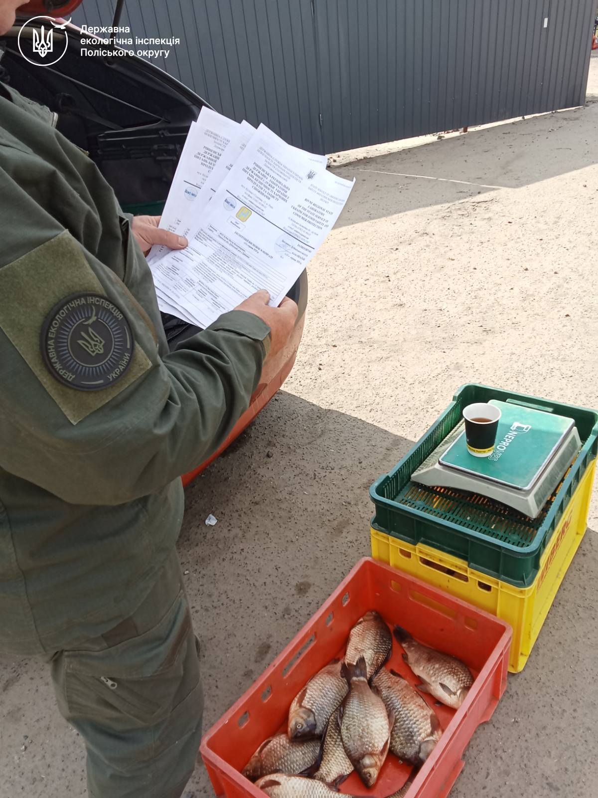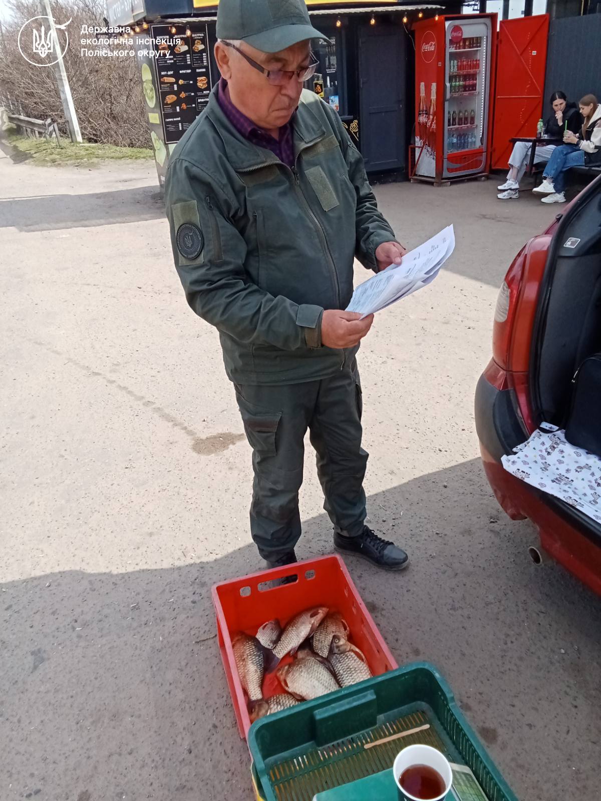 Так, 11 квітня 2026 року фахівцями ДЕІ Поліського округу на Рівненщині проведено заходи державного нагляду (контролю), спрямовані на виявлення фактів незаконного продажу водних біоресурсів у селищі Демидівка Дубенського району.