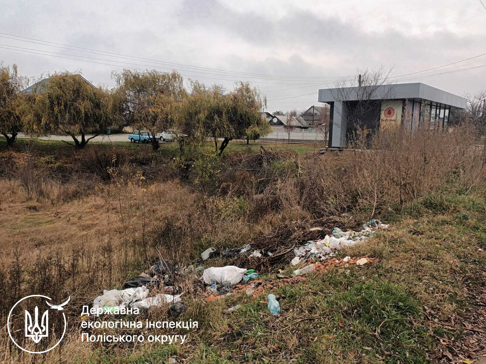 Під час огляду місцевості поблизу сіл Сонячне, Кам’янка та Вишпіль виявлено стихійні сміттєзвалища твердих побутових відходів.