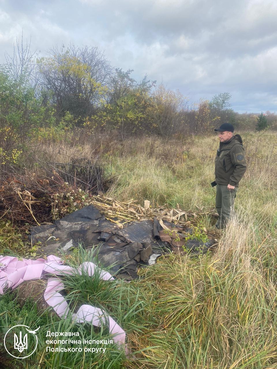 Крім того, за межами села Світин, обабіч об’їзної дороги міста Житомира, інспекторами зафіксовано факт влаштування несанкціонованого звалища будівельних відходів (бита цегла, залишки будівельних сумішей та інші фрагменти).