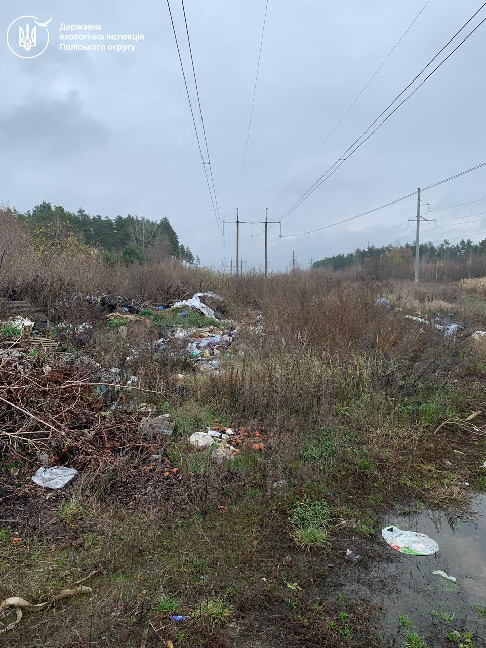 12 листопада під час планового патрулювання на території ПЕК №1 державні інспектори з охорони навколишнього природного середовища Поліського округу поблизу с. Вереси зафіксували факт порушення природоохоронного законодавства – несанкціоноване сміттєзвалище площею понад 1000 кв. м. На ділянці виявлено різноманітні побутові та будівельні відходи, хаотично розкидані серед природного ландшафту.