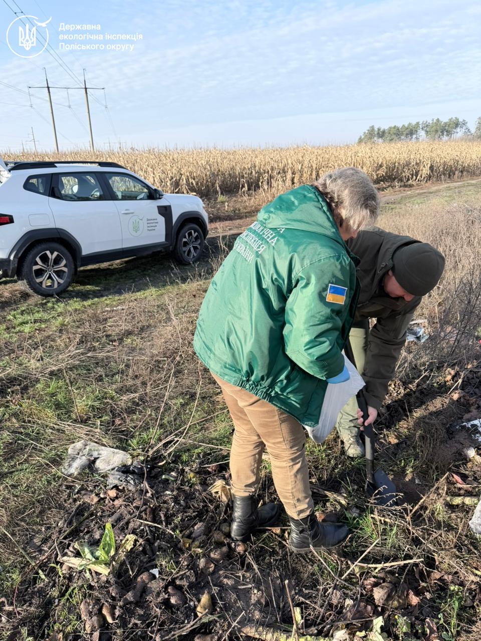 Фахівці Відділу інструментально-лабораторного контролю здійснили відбір проб ґрунту для проведення детального дослідження. Аналізи допоможуть з’ясувати, чи завдано території хімічного або біологічного забруднення, а також визначити рівень потенційної шкоди довкіллю.