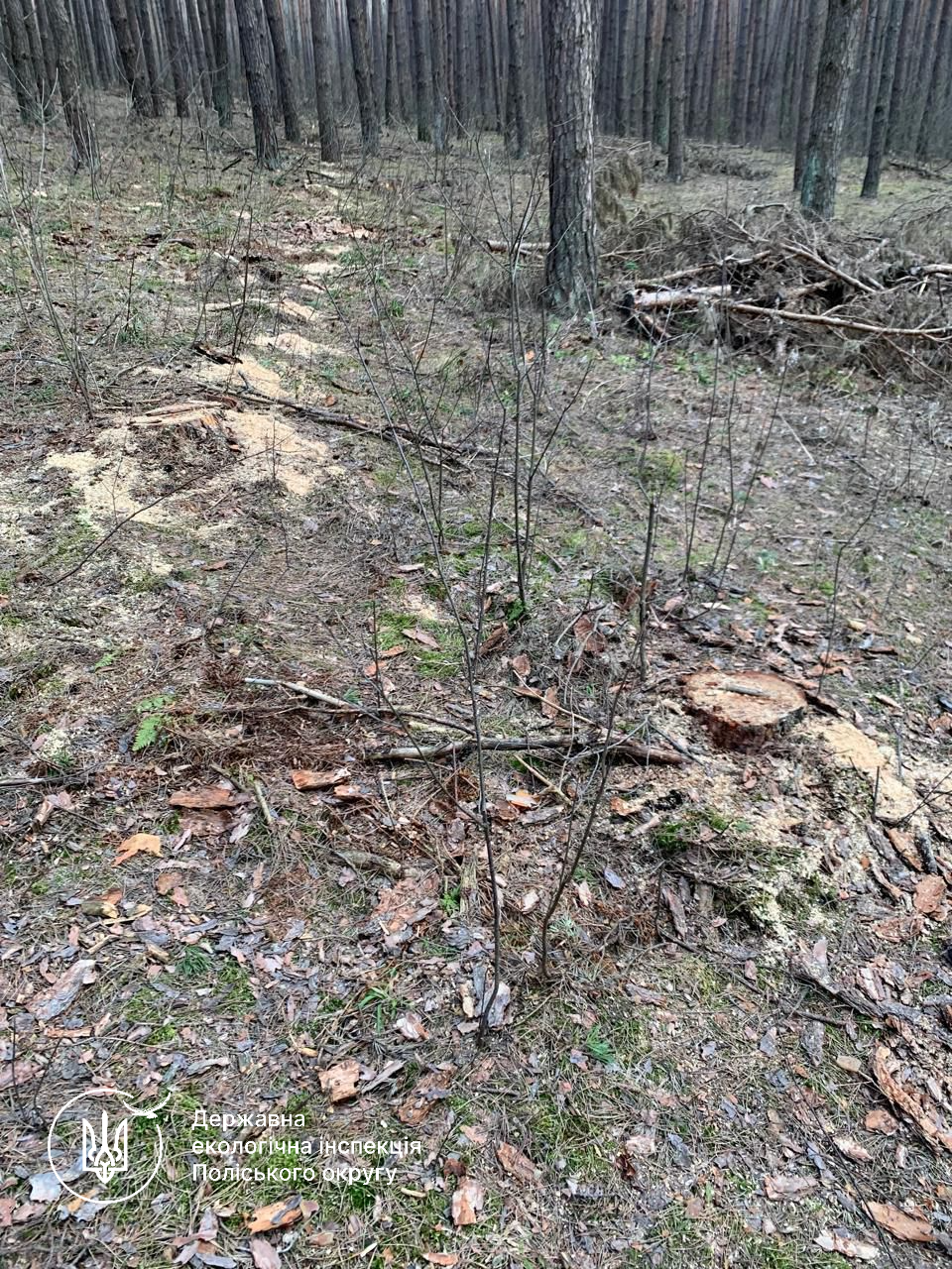 У ході обстеження встановлено незаконну порубку 22 дерев породи сосна. За результатами проведених розрахунків сума шкоди, заподіяної лісовому фонду, становить 93 336 грн 79 коп.